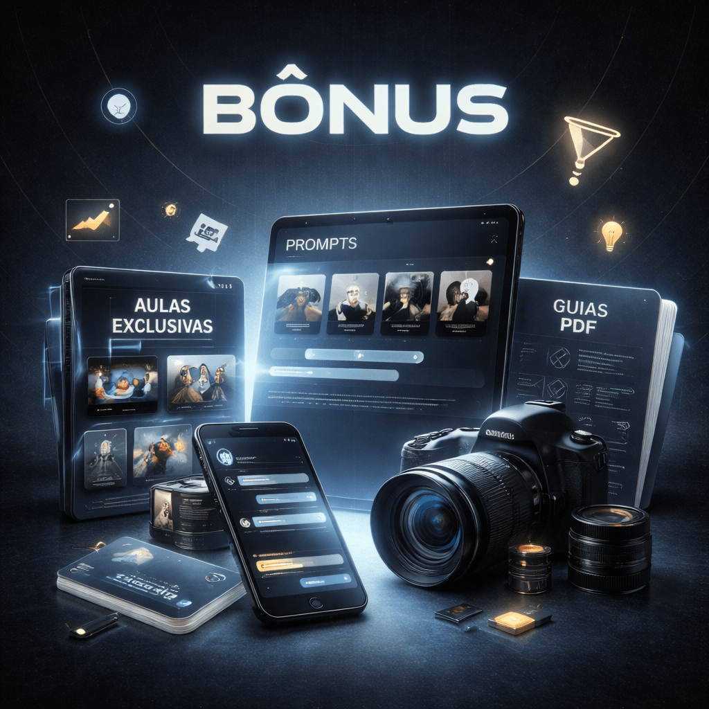 Domino a produção de imagens ultra-realistas e comerciais, engenharia de prompts para padrão profissional e estratégias de posicionamento e venda para monetização prática atendendo clientes, criando produtos digitais e explorando nichos lucrativos em redes sociais e marketplaces.